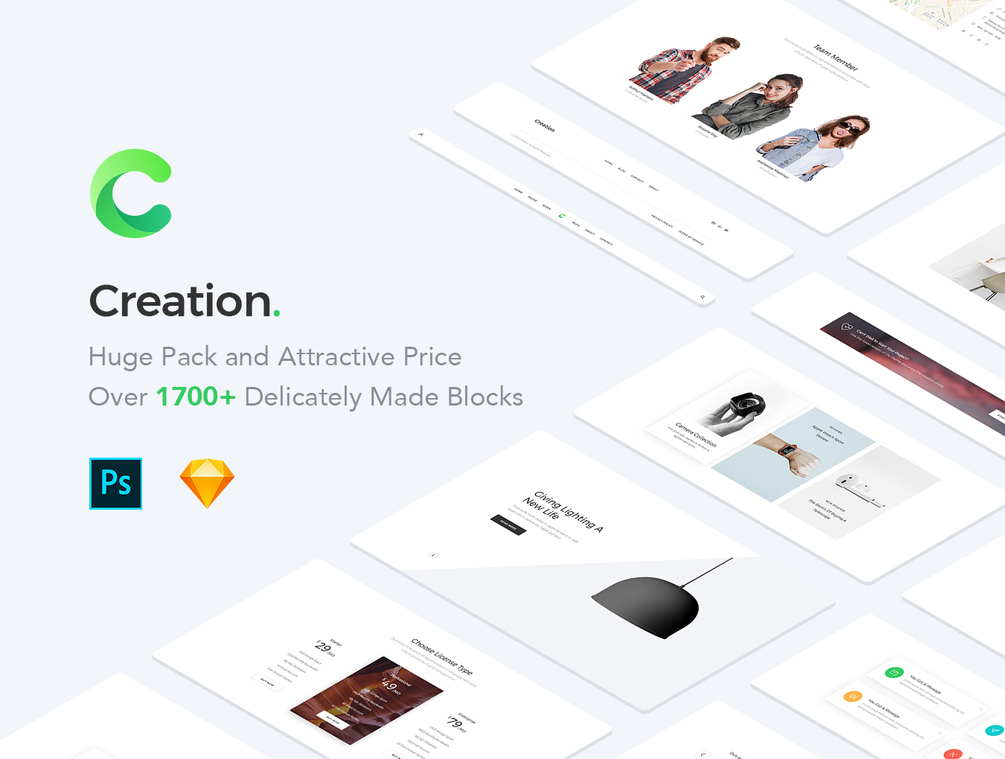 The Creation Web UI kit, which took our designers over 7200 hours to make, is the largest library you could ever find. Designing using it will definitely be enjoyable as we have every elements you need for you to customize. Each is fully editable and pixel perfect. Additionally, we have created both light and dark blocks so that your design will be way easier than it was. It is definitely the tool you need in your collection!